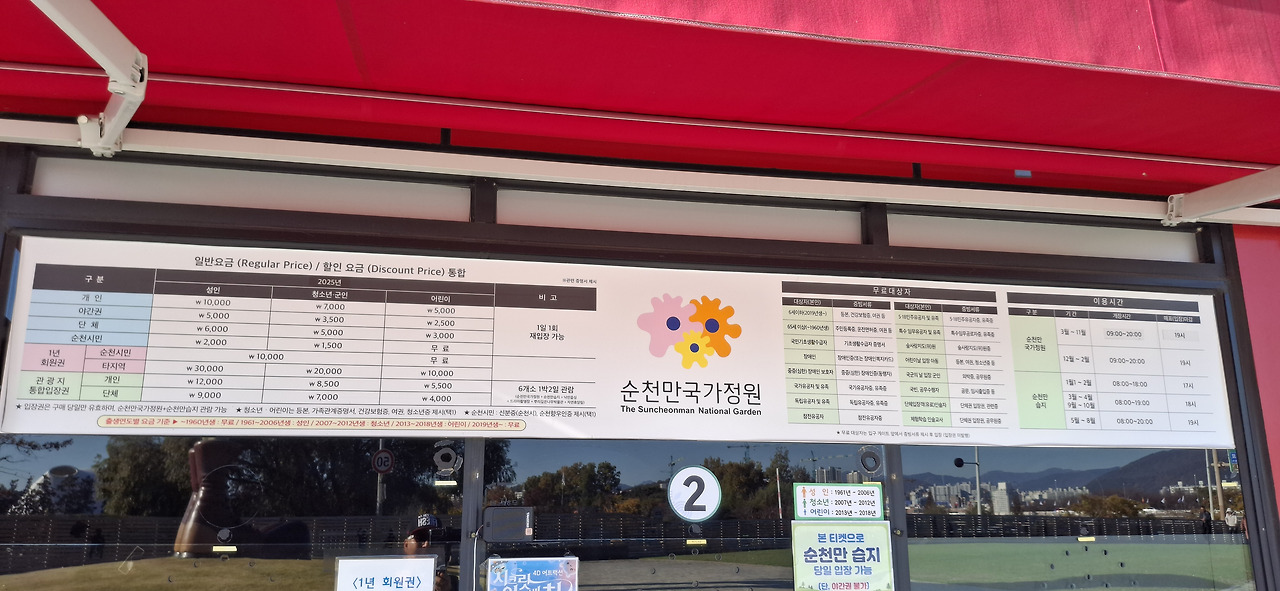 순천만국가정원 남문 매표소(성인 10,000원, 65세 무료)한컷!!! ▼
