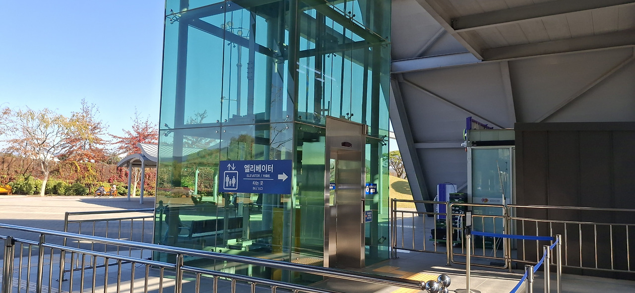 순천만PRT정원역 매표소에서 소형 무인궤도열차 탑승장으로 이동중 엘리베이터 한컷!!! ▼