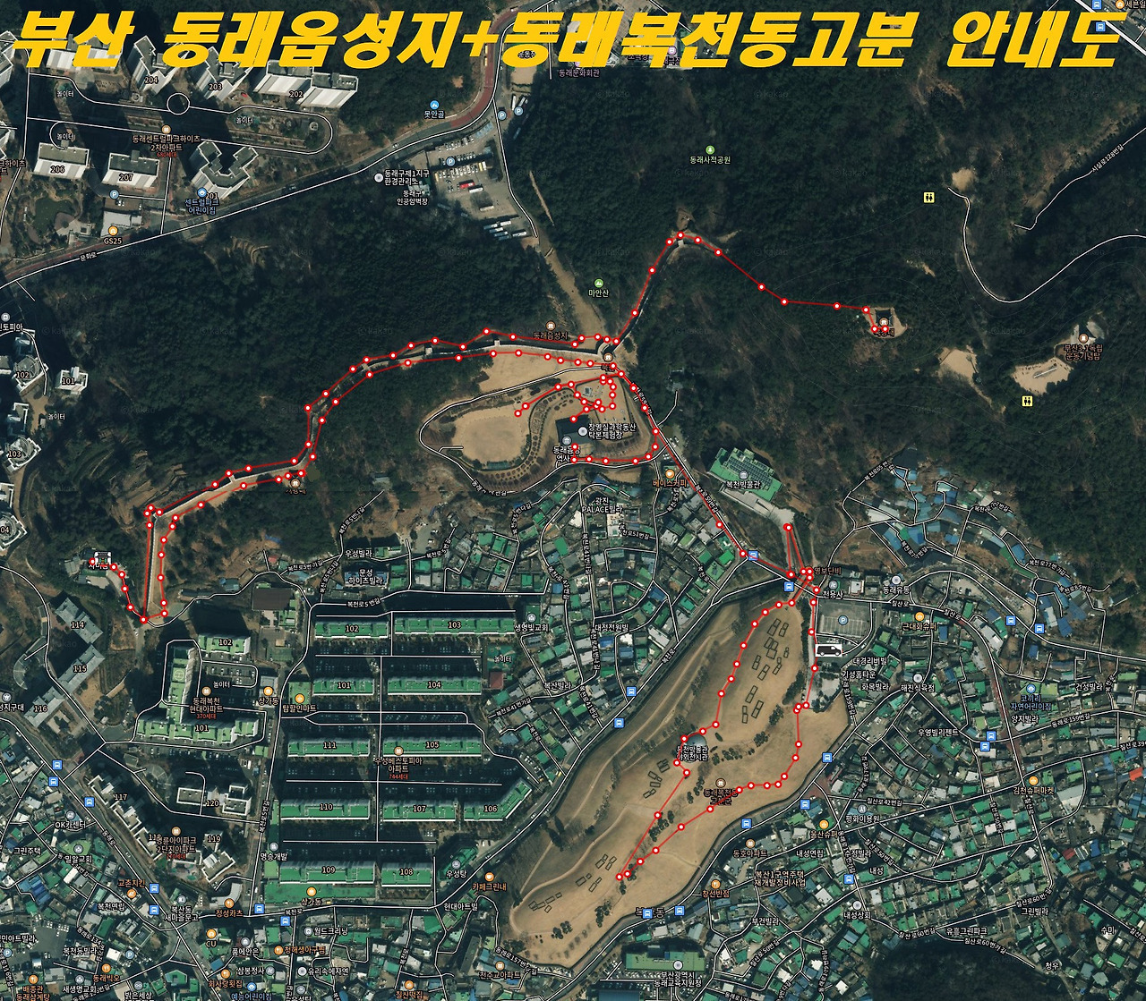 ↝ 부산시민공원 ↝ 석불사 ↝ 동래복천동고분+동래읍성 ↝ 땅뫼산 황토숲길 둘레길