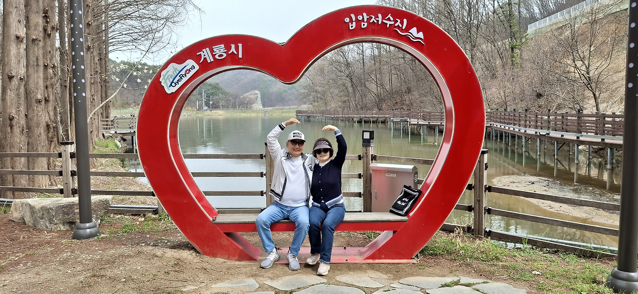 입암저수지 둘레길 하트 포토죤에서 기념촬영 한컷!!! ▼
