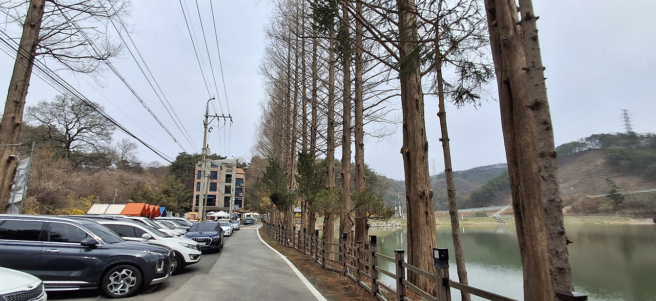 입암저수지 둘레길 산책중 한마음정육식당 계룡입암점과 메타쇄콰이어 한컷!!! ▼