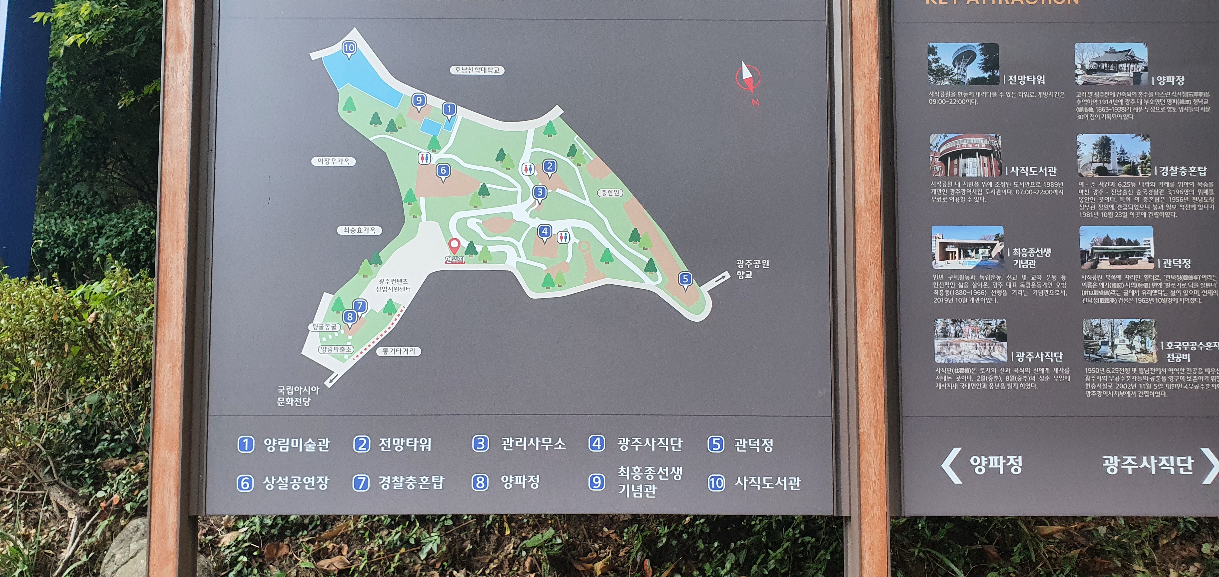 무등산 무료주차장에서 사직공원 전망타워로 이동후안내간판 한컷!!! ▼