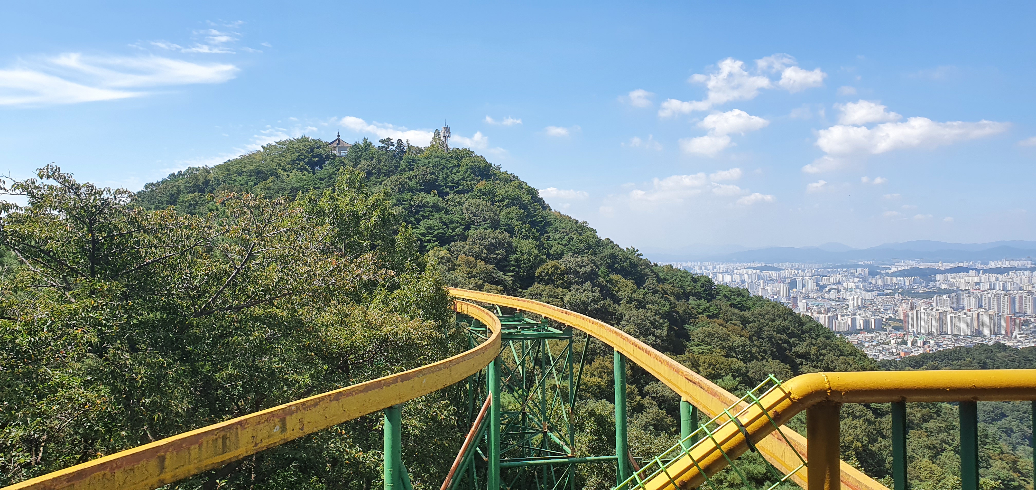 광주 무등산 리프트올라와 전망대로 이동중 모노레일에서 파노라마 뷰~ 한컷!!! ▼